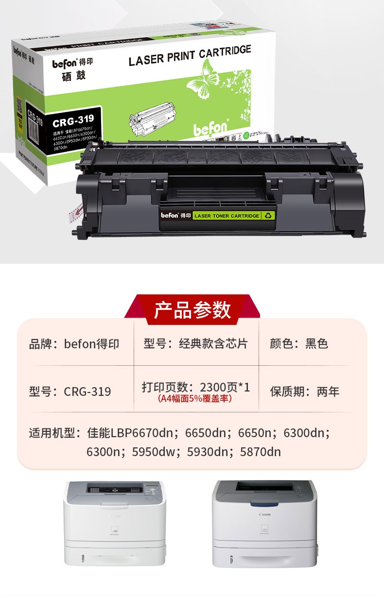 得印(befon) CRG319硒鼓 大容量 2300页 适用佳能LBP6670dn 单位:支 黑色