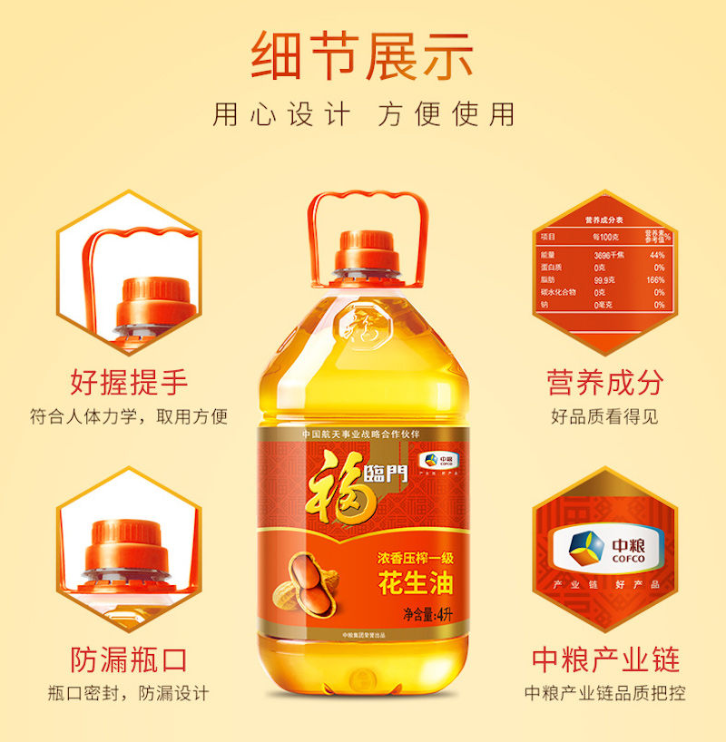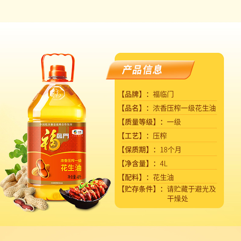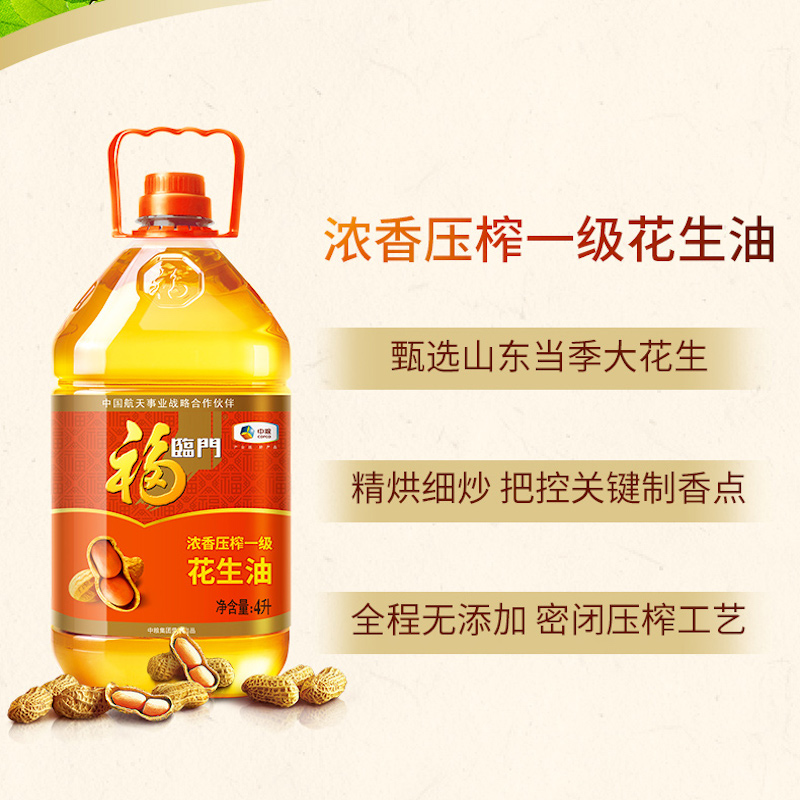 中粮福临门压榨一级花生油 4L(单位:桶) 金色