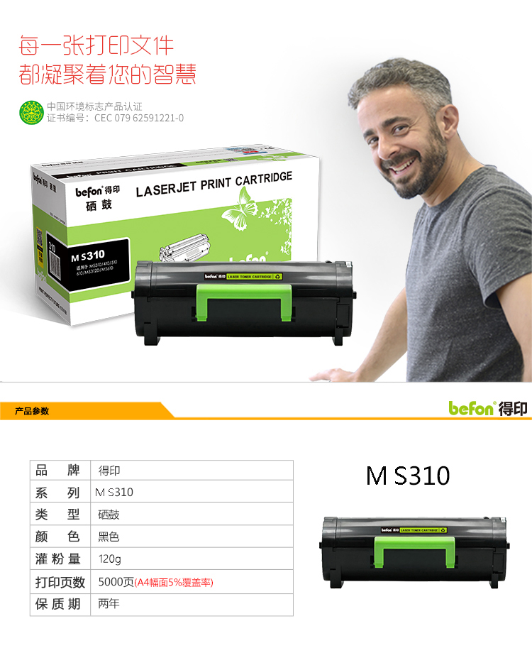 得印MS310粉盒 适用利盟硒鼓 MS410/510d/MS610/415DN/MX310DN/611/MS310/ms510dn/ms410/ms312dn复印机墨盒