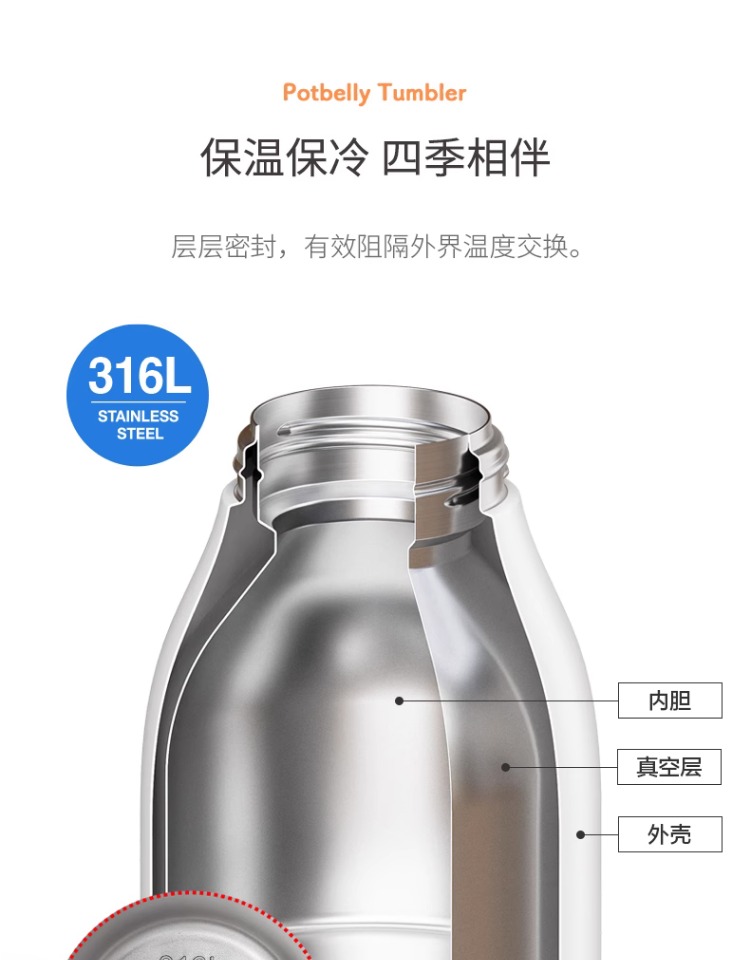 乐扣乐扣(LOCK&LOCK) 大肚保温杯 LHC3311ORG 1.0L 橙色(单位:个)