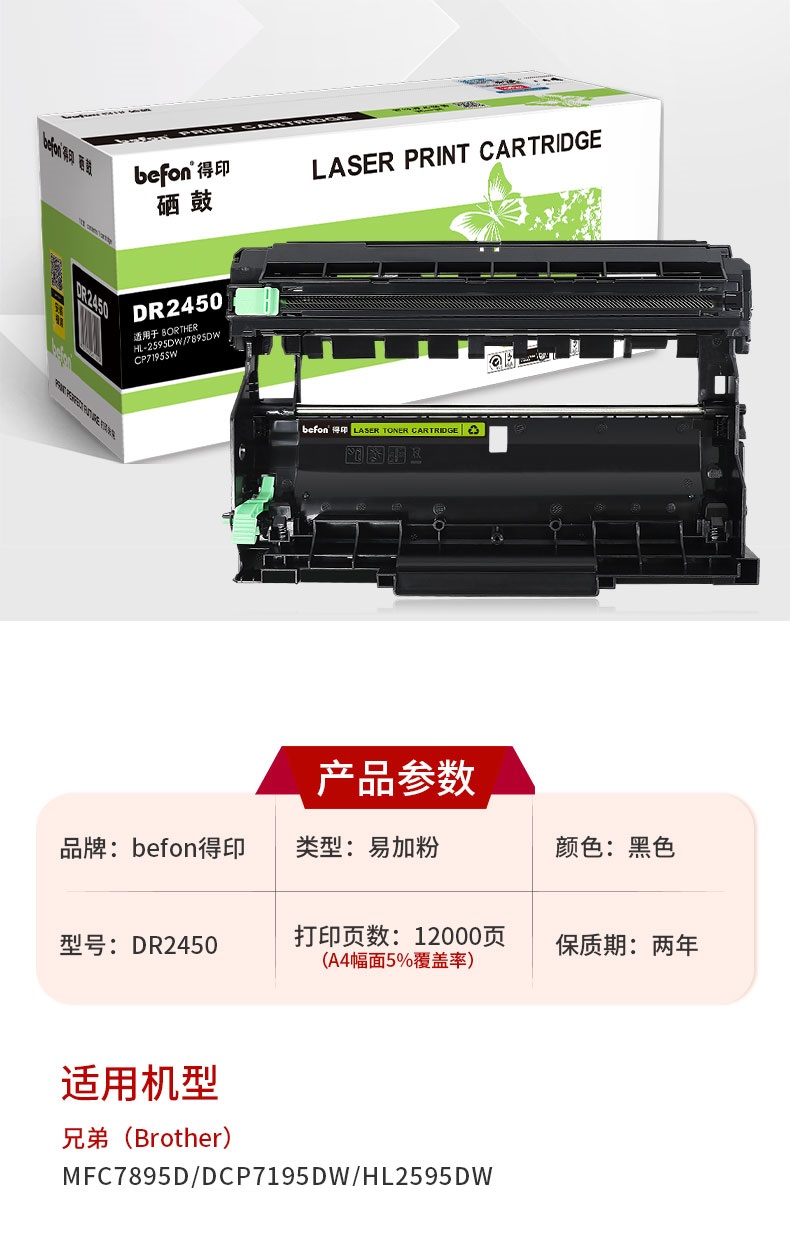 得印(befon) DR2450 硒鼓架 12000页 适用兄弟MFC-7895DW 单位:支 黑色