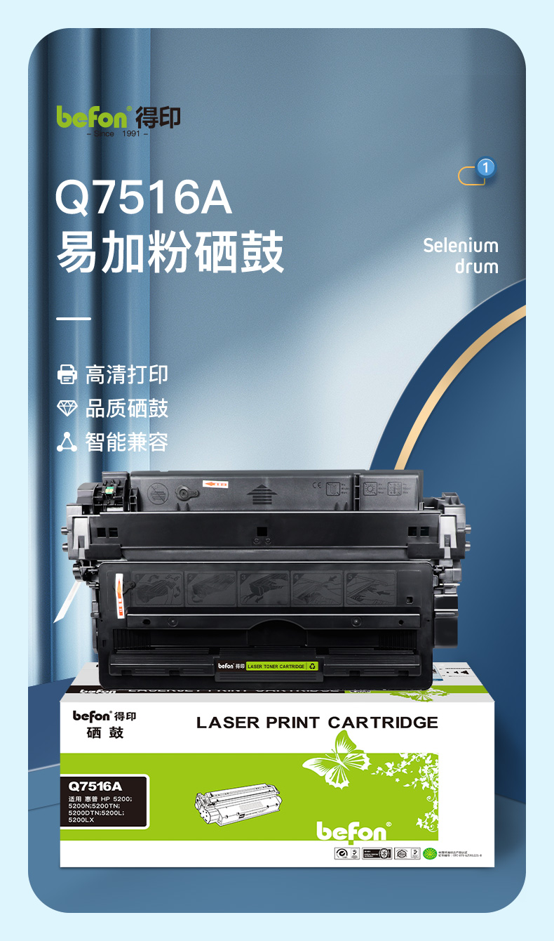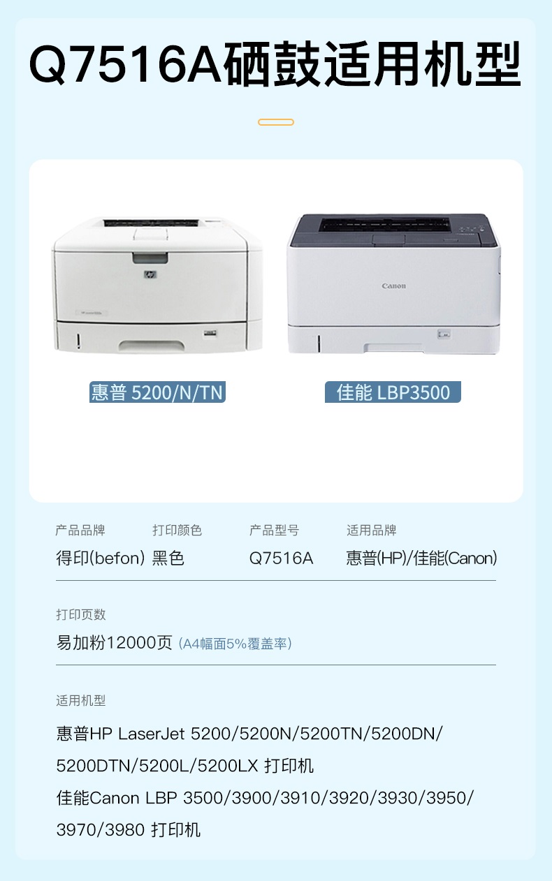 得印 Q7516A黑色硒鼓 惠普HP5200/5200N/5200TN/5200DTN 单位:支 黑色
