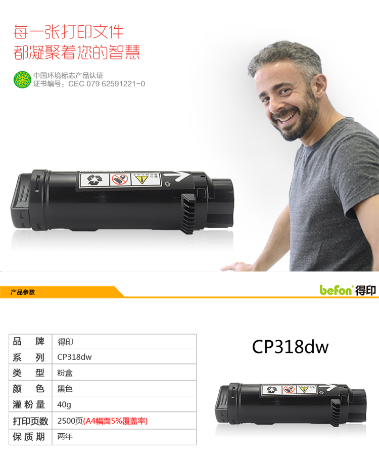 得印 CP318dw粉盒黑色 适用施乐DocuPrint CP315DW CP318Z CM315Z CM318Z CP318 CP318W彩色打印机墨盒硒鼓 黑色