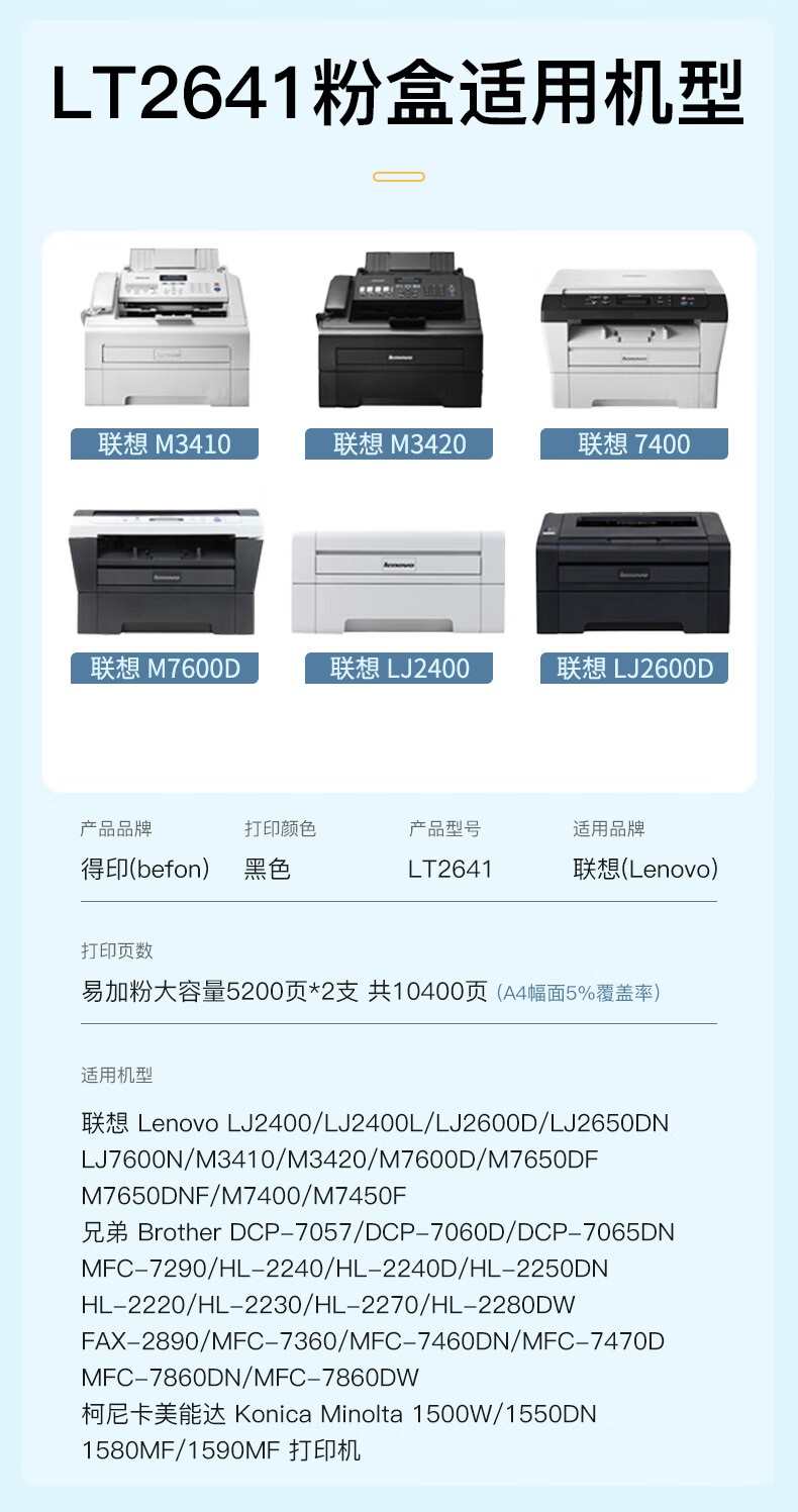 得印 LT2641黑色粉盒2支装 联想LJ2600D LJ2650DN M7600D 单位:支 黑色