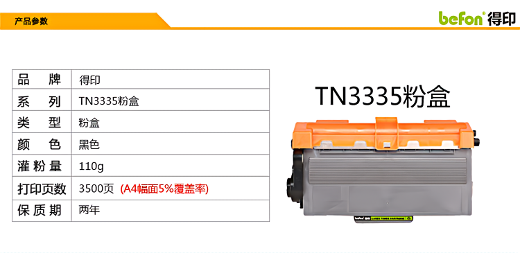 得印 黑色粉盒TN3335 兄弟HL-5440D 5445D 5450DN 单位:支 黑色