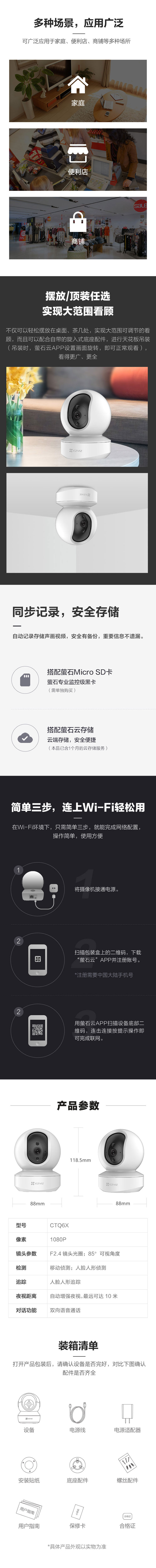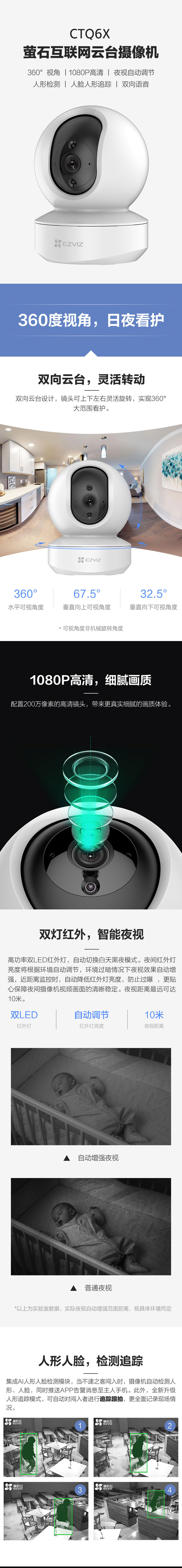 萤石EZVIZ室内云台200万像素安防监控摄像机CTQ6X(单位:台) 白色