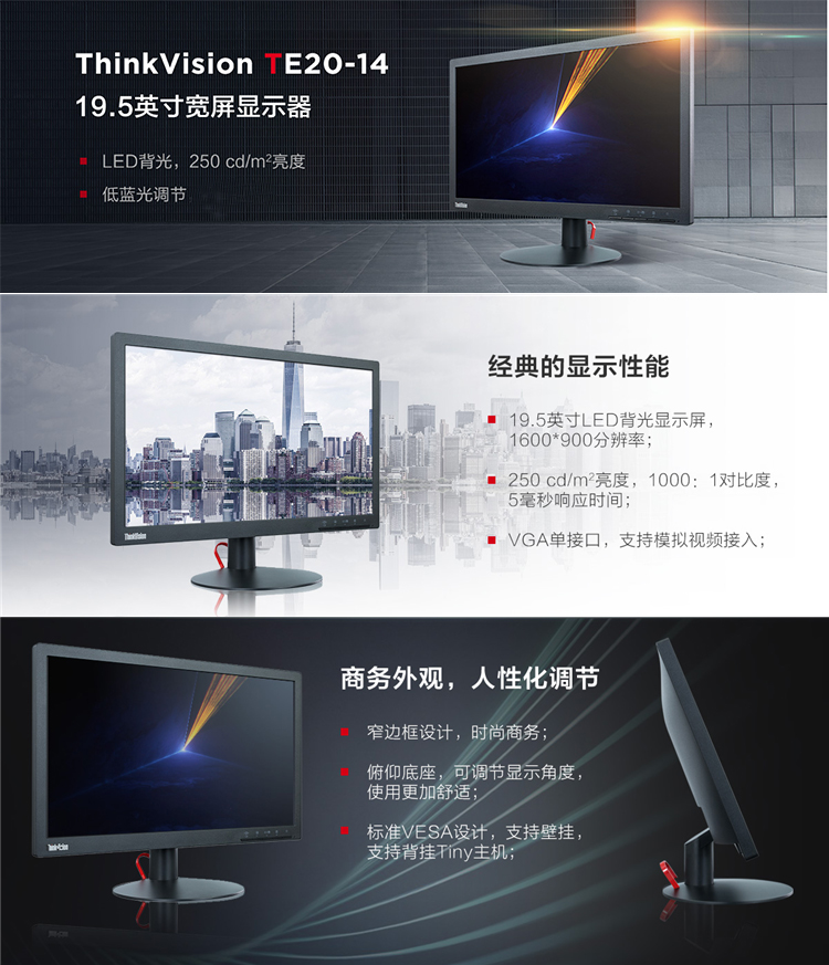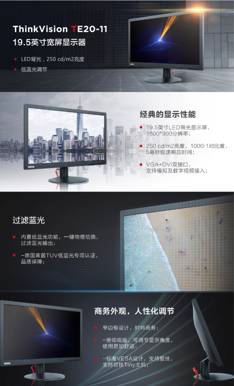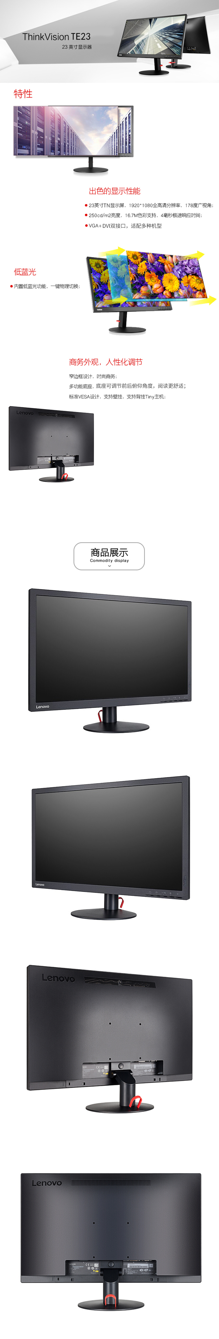 液晶显示器 联想(THINKVISION) TE23-10 (23英寸/1920×1080DPI) 显示器 黑色