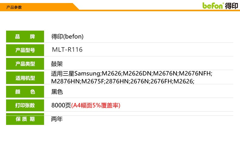 得印 MLT-R116黑色硒鼓 三星M2626/M2676N/M2876HN/M2675F 单位:支 黑色