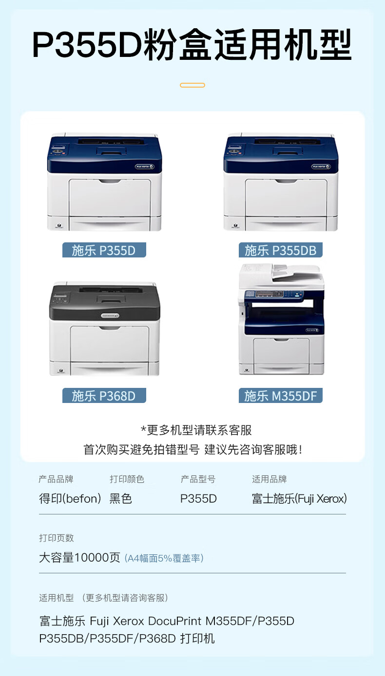 得印P355D粉盒 适用富士施乐355粉盒 M355DF/P355D/P355DB/P355DF/P368D打印机硒鼓 富士施乐p355d粉盒