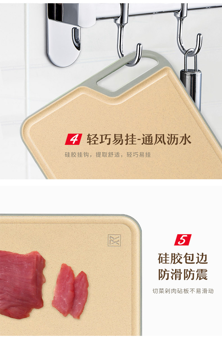 双枪(Suncha)菜板 天然小麦不发霉砧板抗菌防霉切菜板环保可降解稻壳案板刀板塑料面板 卡其色