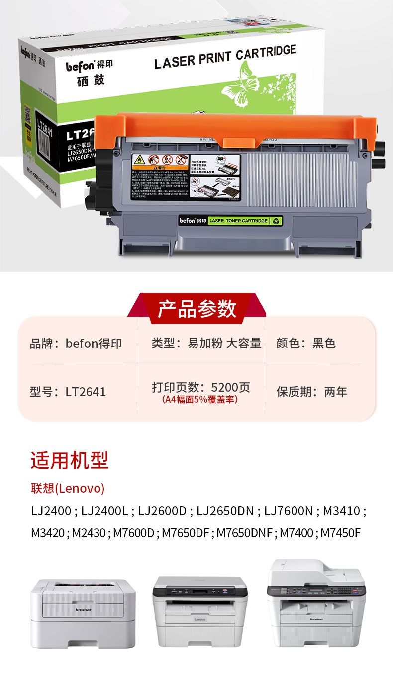 得印 LT2641粉盒大容量 适用联想LJ2600D LJ2650DN M7600D 单位:套 黑色