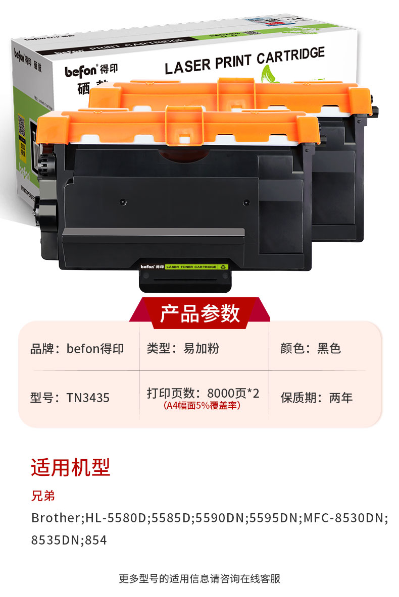 得印TN3435粉盒超大容量2支装 适用兄弟8540DN HL-5580D 5585D单位:套 黑色