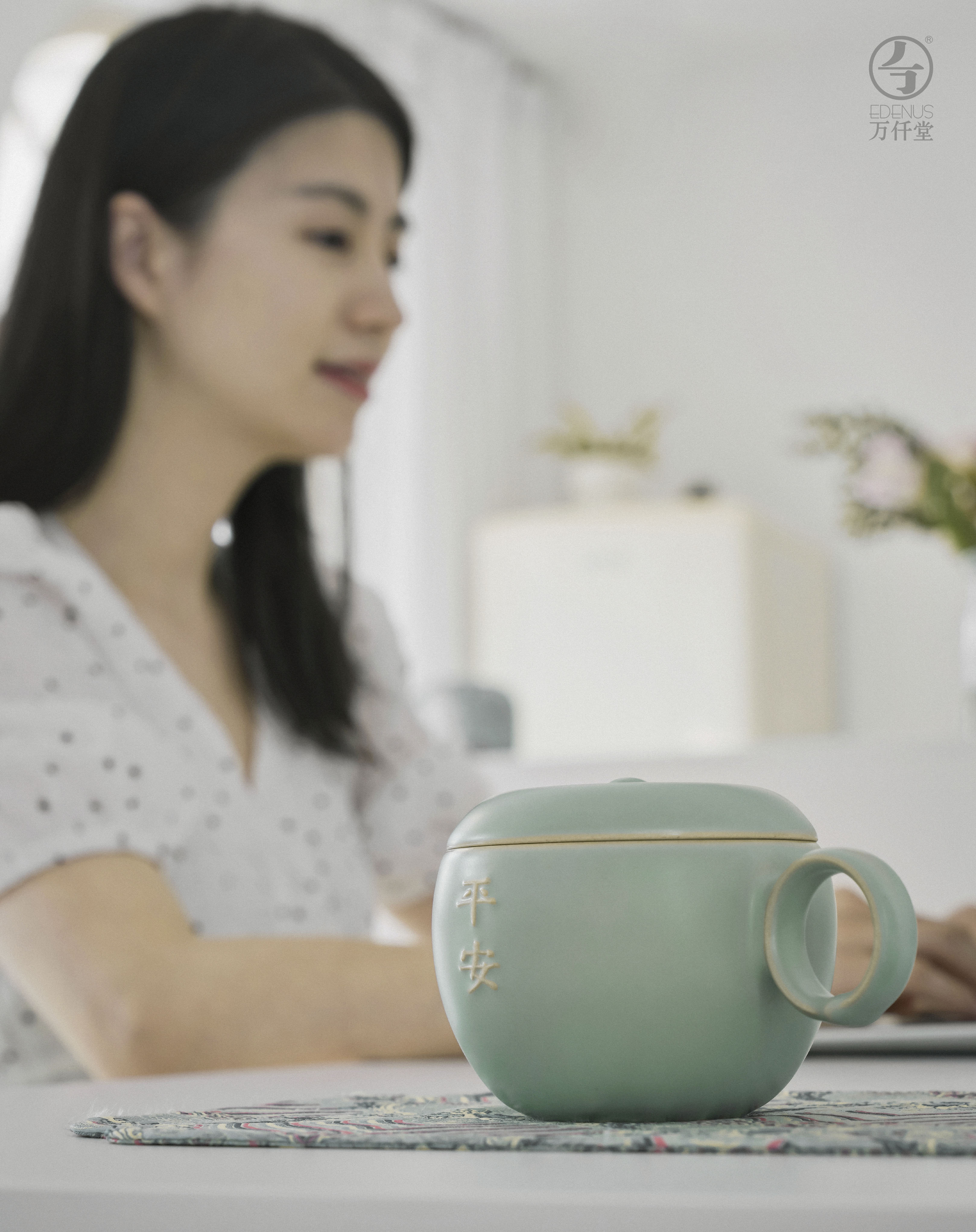万仟堂 平安·办公杯 古绿釉 万仟堂