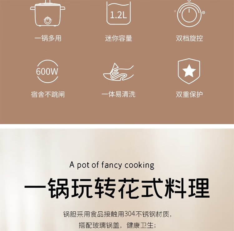 新飞(Frestec)多功能电煮锅 1.2L FTDG-010P(单位:台) 象牙色