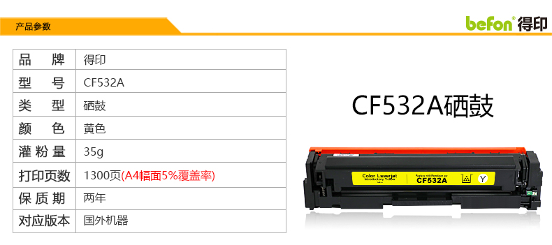 得印 CF532A硒鼓 适用惠普 M154a/M154nw/M180N/M181FW 单位:支 黄色