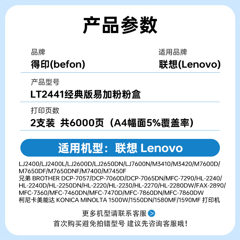 得印(befon) LT2641/LT2441 两支装6000页 大容量易加粉 灰色(单位:组)