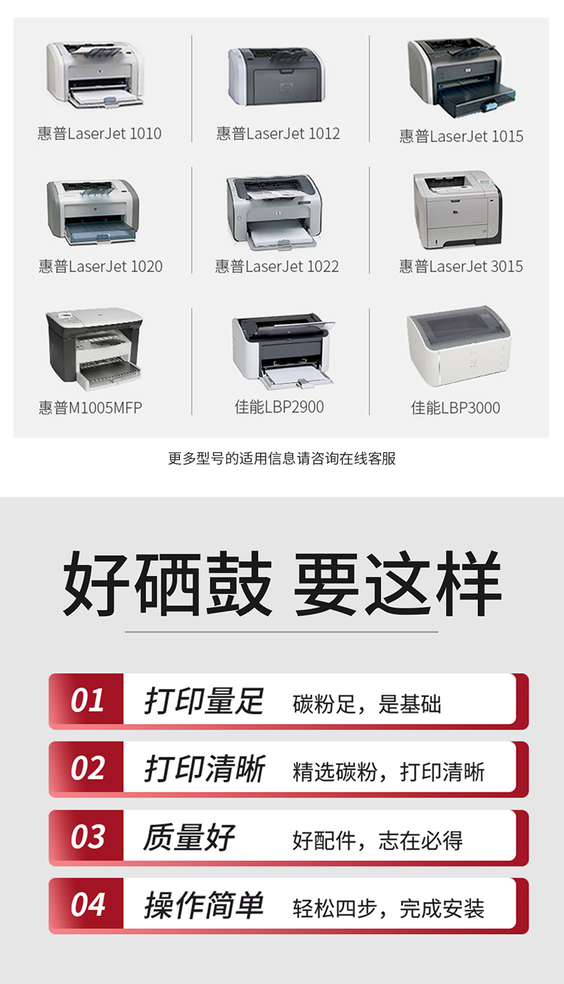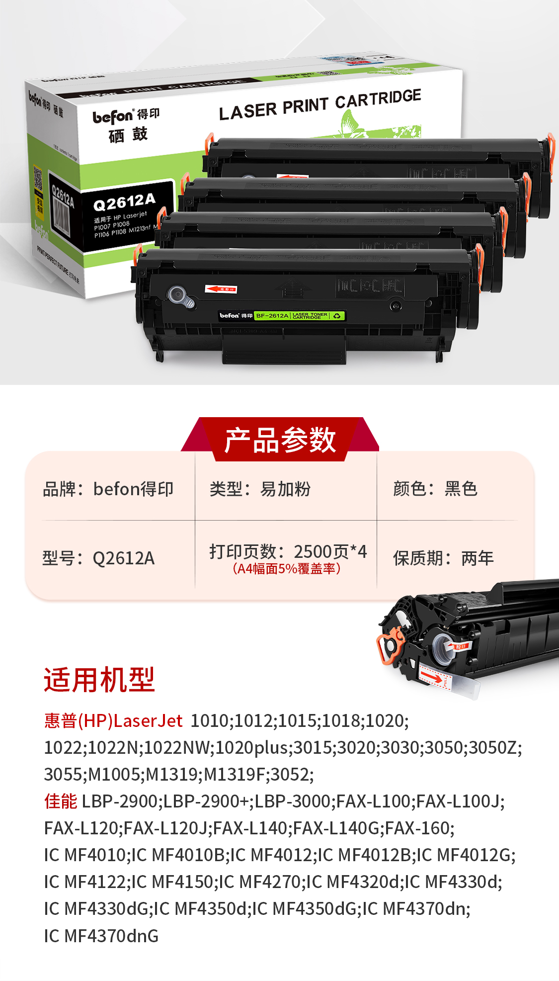 得印q2612a 硒鼓大容量4支装适用hp m1005 1020plus 1010 1018单位:套 黑色