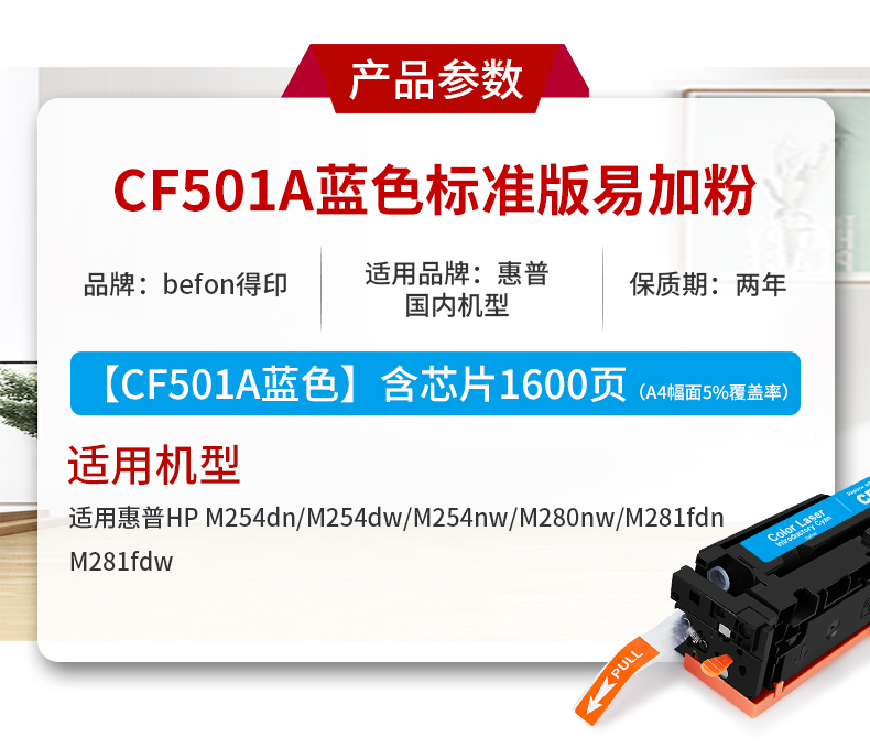 得印 CF501A硒鼓 适用惠普m281fdw m254dw M254dn M254nw 单位:支 蓝色