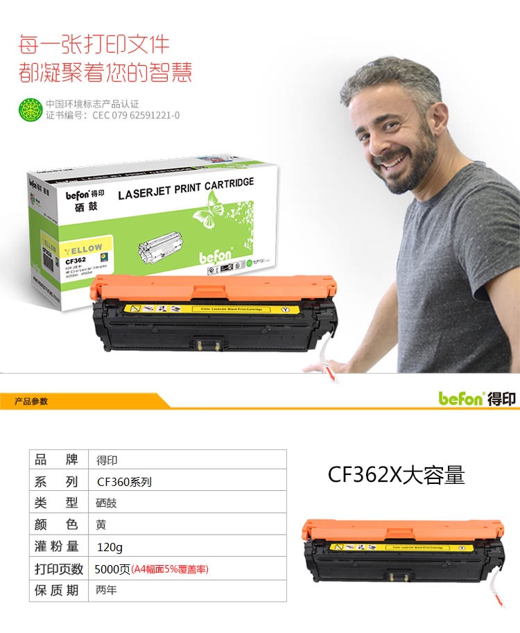 得印 CF362A硒鼓 适用惠普HP M552dn M553n M553dn M553dnm单位:支 黄色
