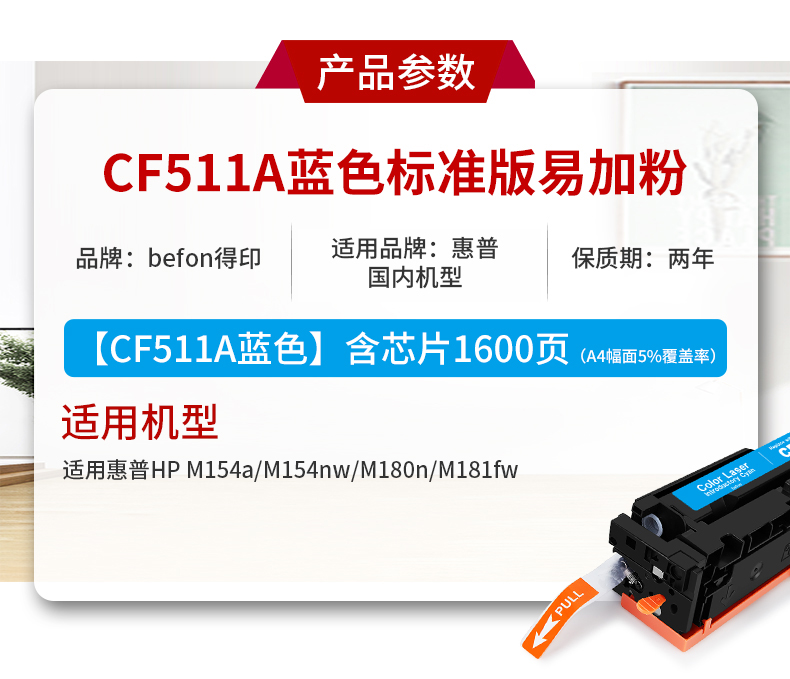 得印 CF511A硒鼓 适用惠普hp M180n M154a M181fw M154nw 单位:支 蓝色