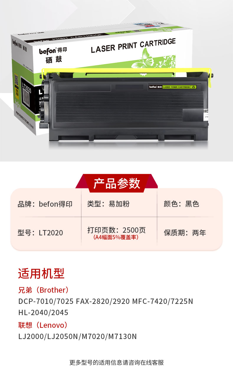 得印 LT2020粉盒 适用联想LJ2000 LJ2050N M7020 M7030 单位:支 黑色