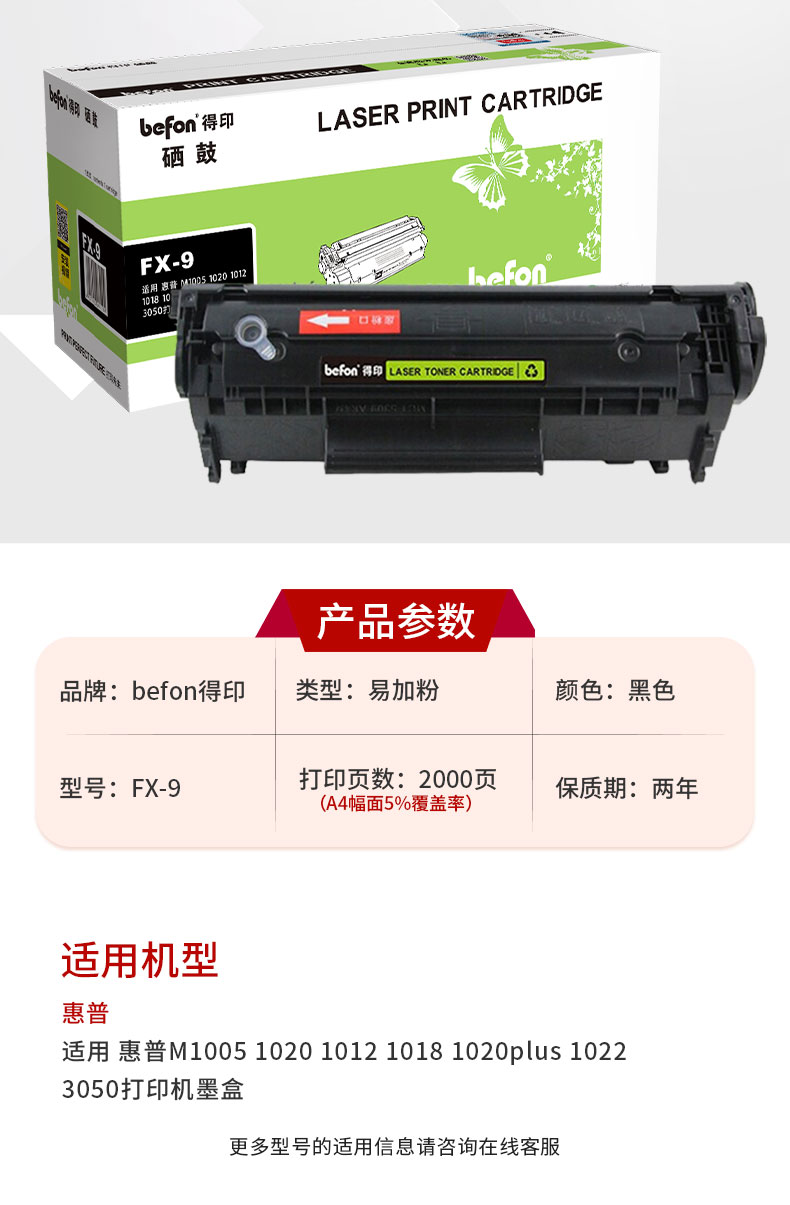 得印 FX-9硒鼓 适用惠普M1005 1020 1012 1018 1020plus 单位:支 黑色