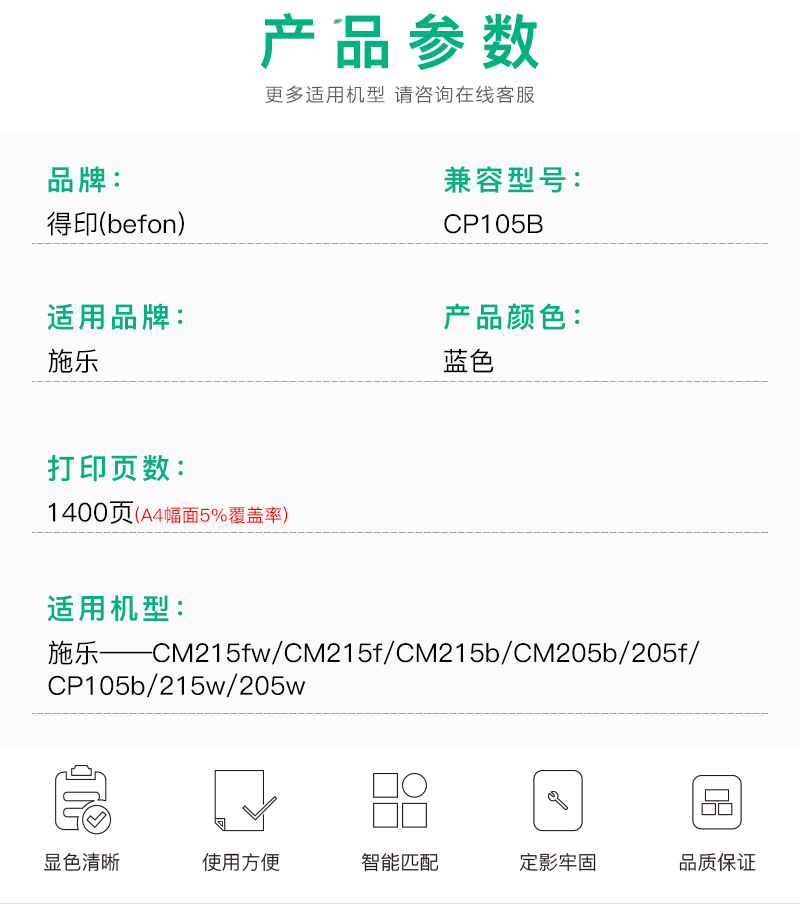 得印(befon) CP105B 1400页青色 适用施乐CM215fw 墨粉盒 1.00 只/支 (计价单位:支) 青色