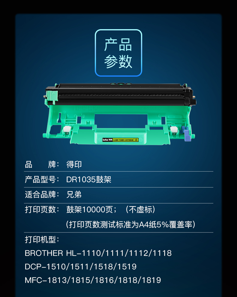 得印 DR1035硒鼓架 适用兄弟dcp1618W 1518 1608 mfc1919nw 1208 1218W MFC1813 1818 ld201墨粉盒墨盒 黑色