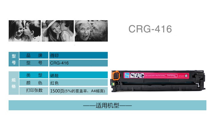 得印(befon)CRG-416 M红色硒鼓(适用佳能iC MF8050Cn/8030cn/8010cn/8080cw) 红色