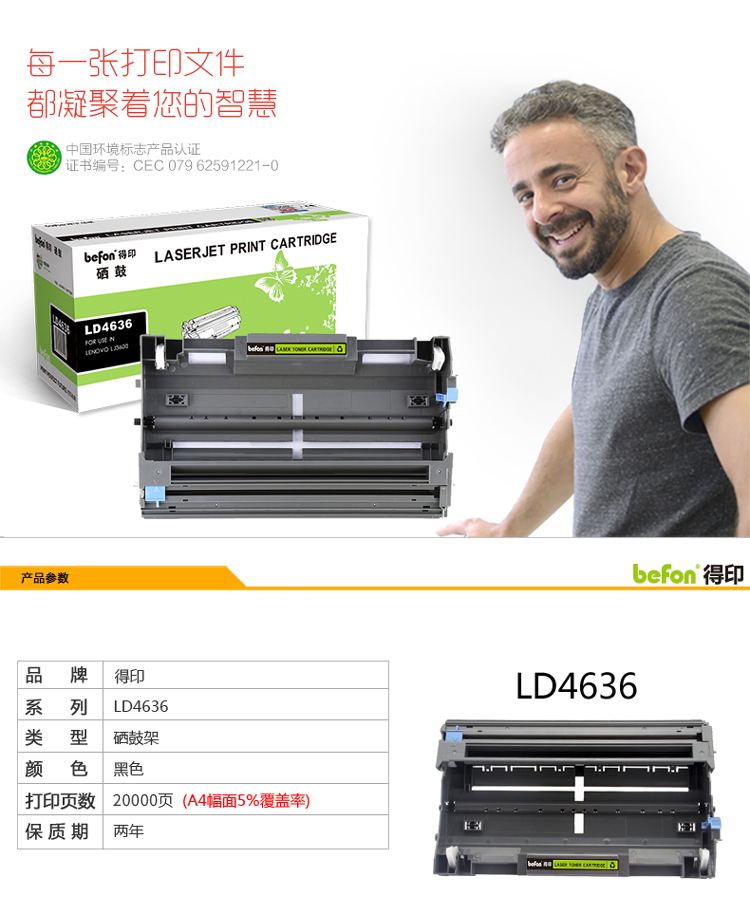 得印(befon) LD4636硒鼓 约20000页 适用于联想 LJ3500 单位:支 黑色