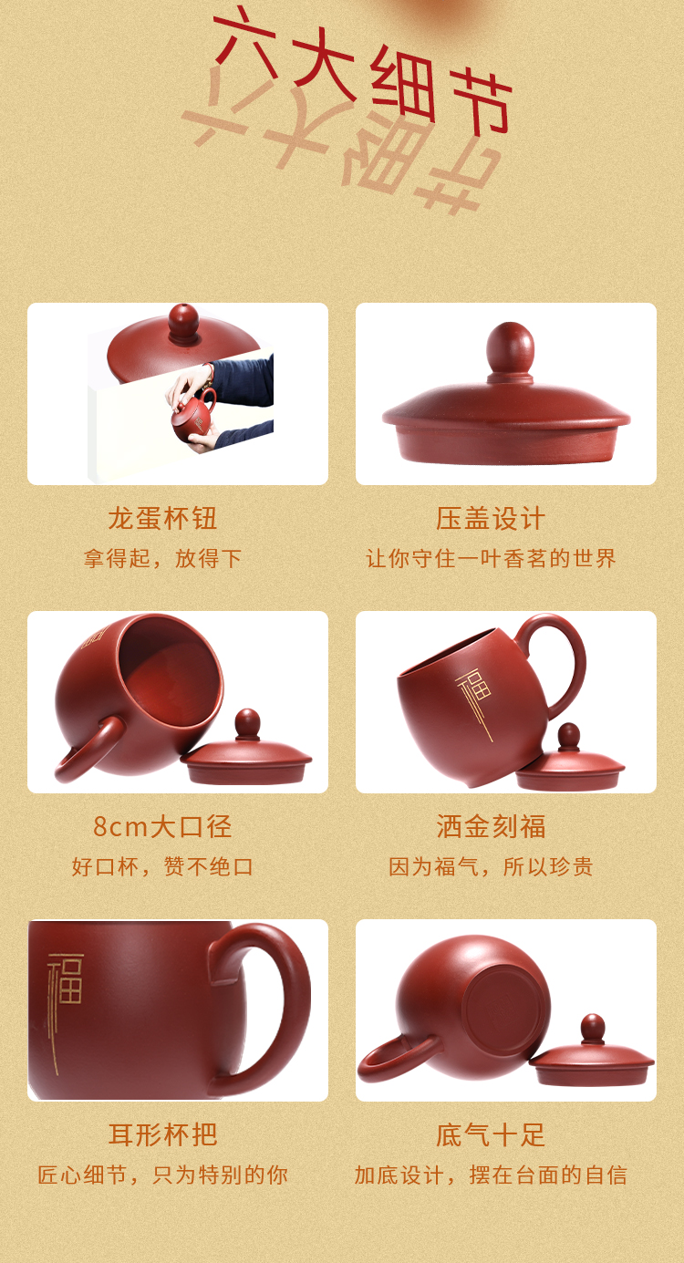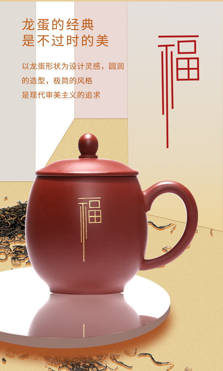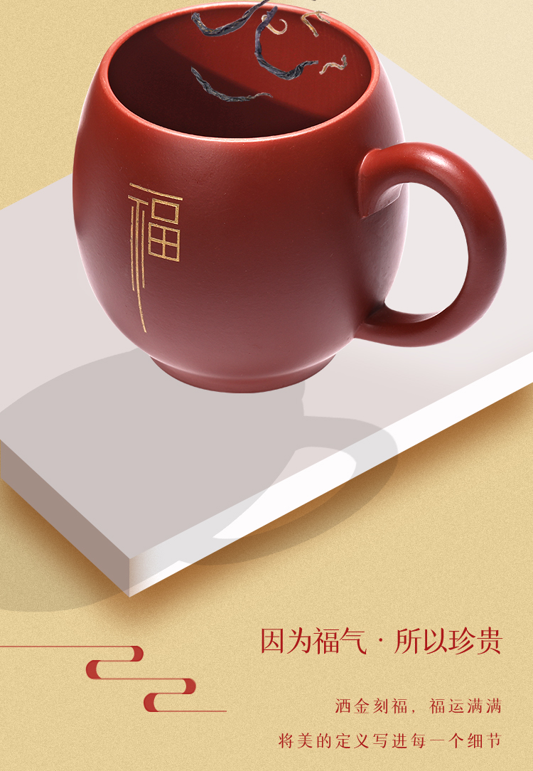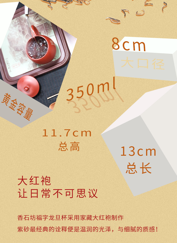 香石坊宜兴原矿纯手工紫砂杯福字龙旦杯350mlBT637 单位:只 福字龙旦杯 350ml
