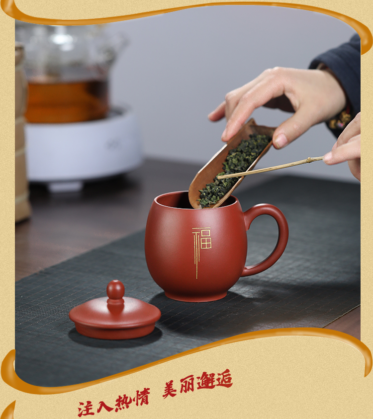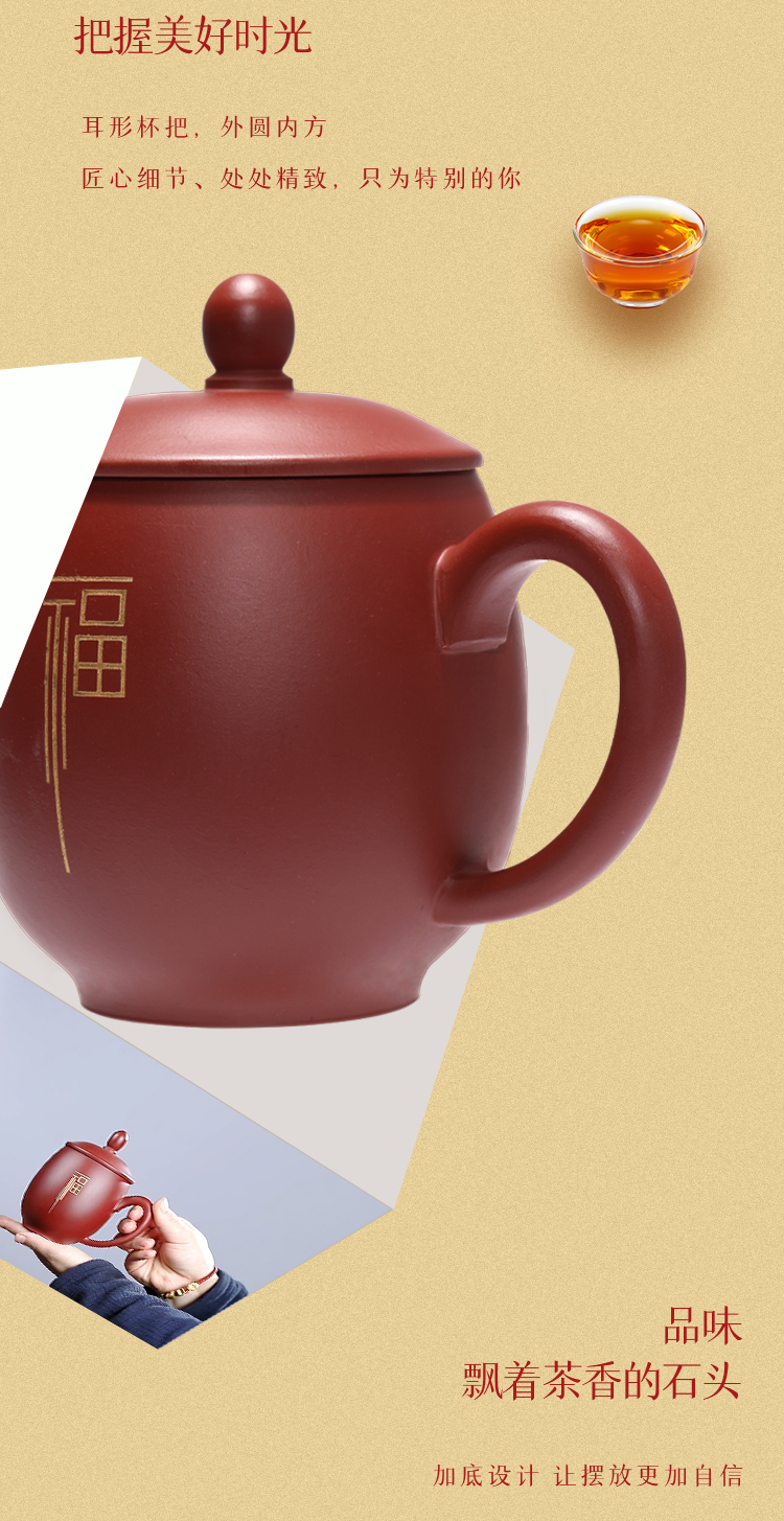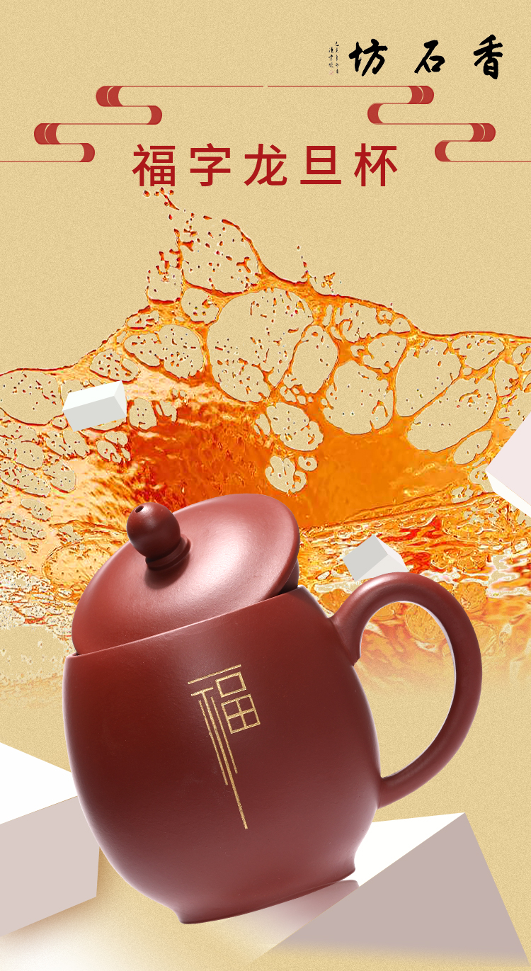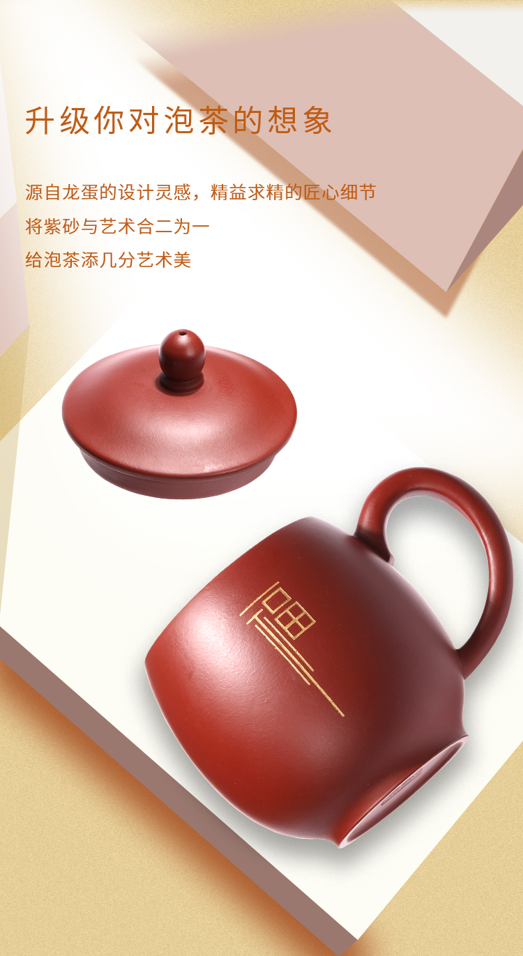 香石坊宜兴原矿纯手工紫砂杯福字龙旦杯350mlBT637 单位:只 福字龙旦杯 350ml