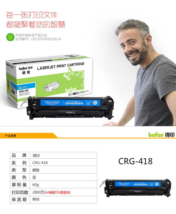 得印CRG-418硒鼓 适用佳能MF8350Cdn/8380Cdw/8580Cdw 单位:支 蓝色