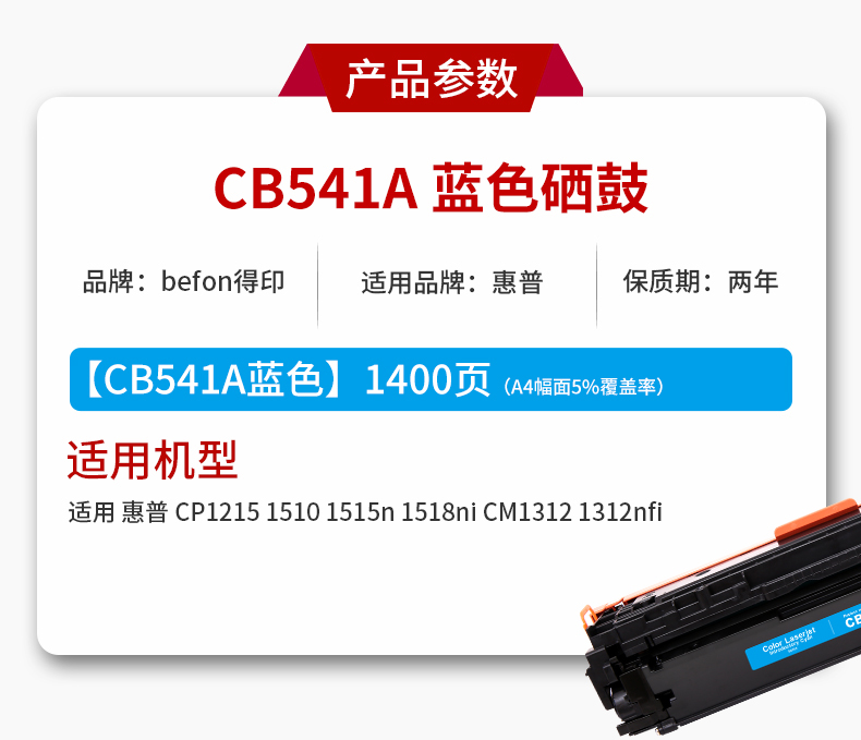 得印(befon)CB541A 硒鼓约1400页 适用HP CP1215 单位:支 蓝色