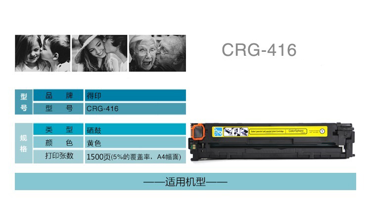 得印(befon) CRG-416 约1500页 适用佳能iC MF8050Cn 硒鼓 单位:支 黄色