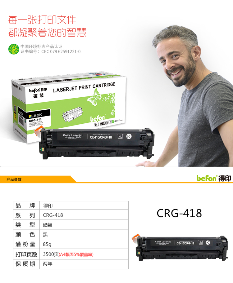 得印(befon) CRG-418硒鼓 约3500页 适用佳能MF8380Cdw 单位:支 黑色