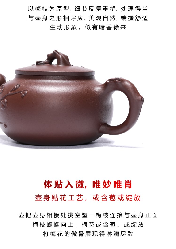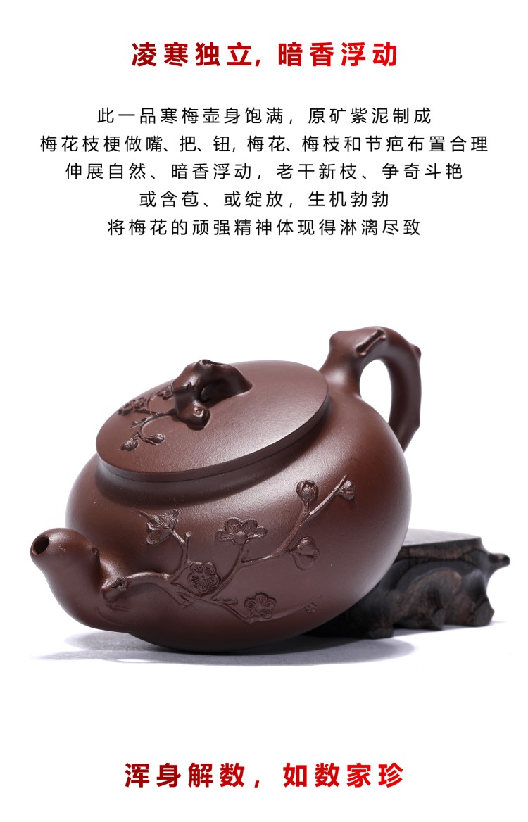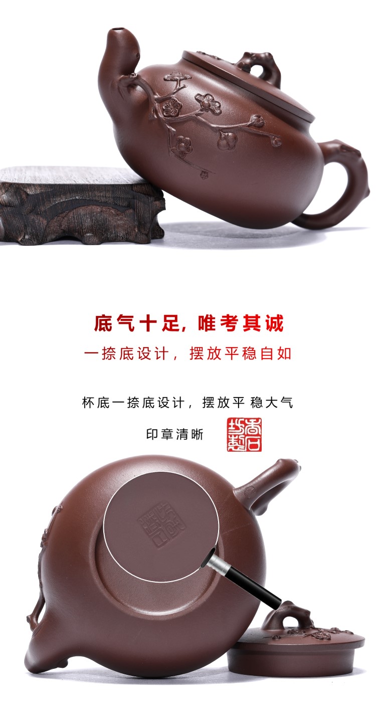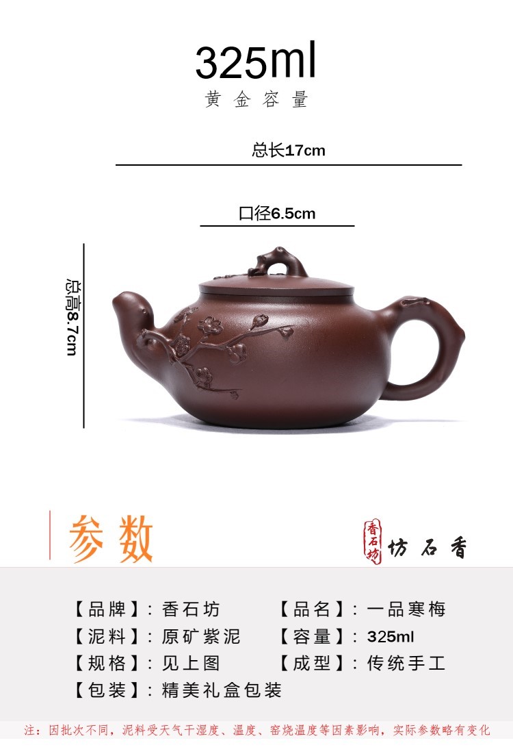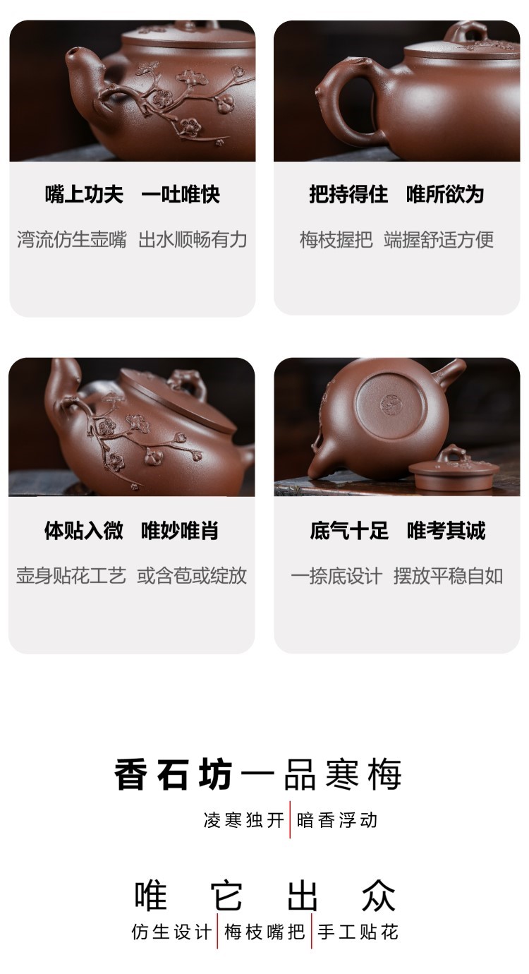 香石坊宜兴原矿纯手工紫砂壶一品寒梅325mlBT8019 单位:把 一品寒梅325ml