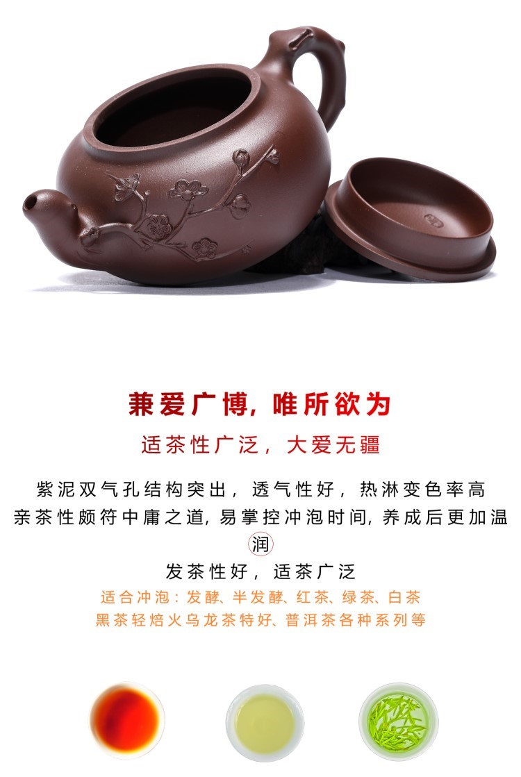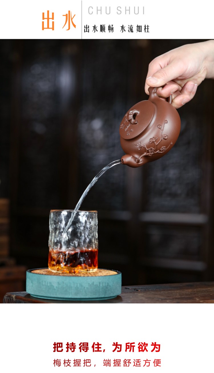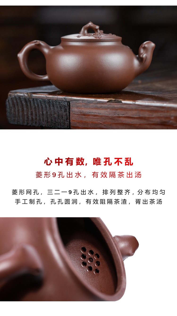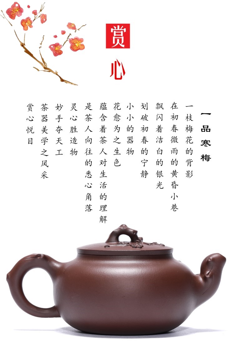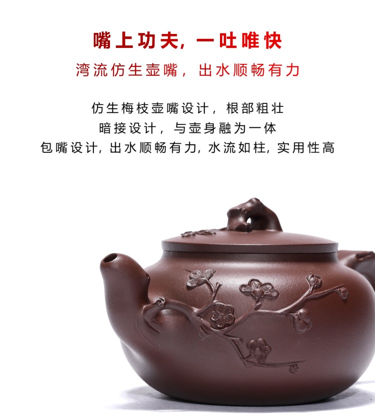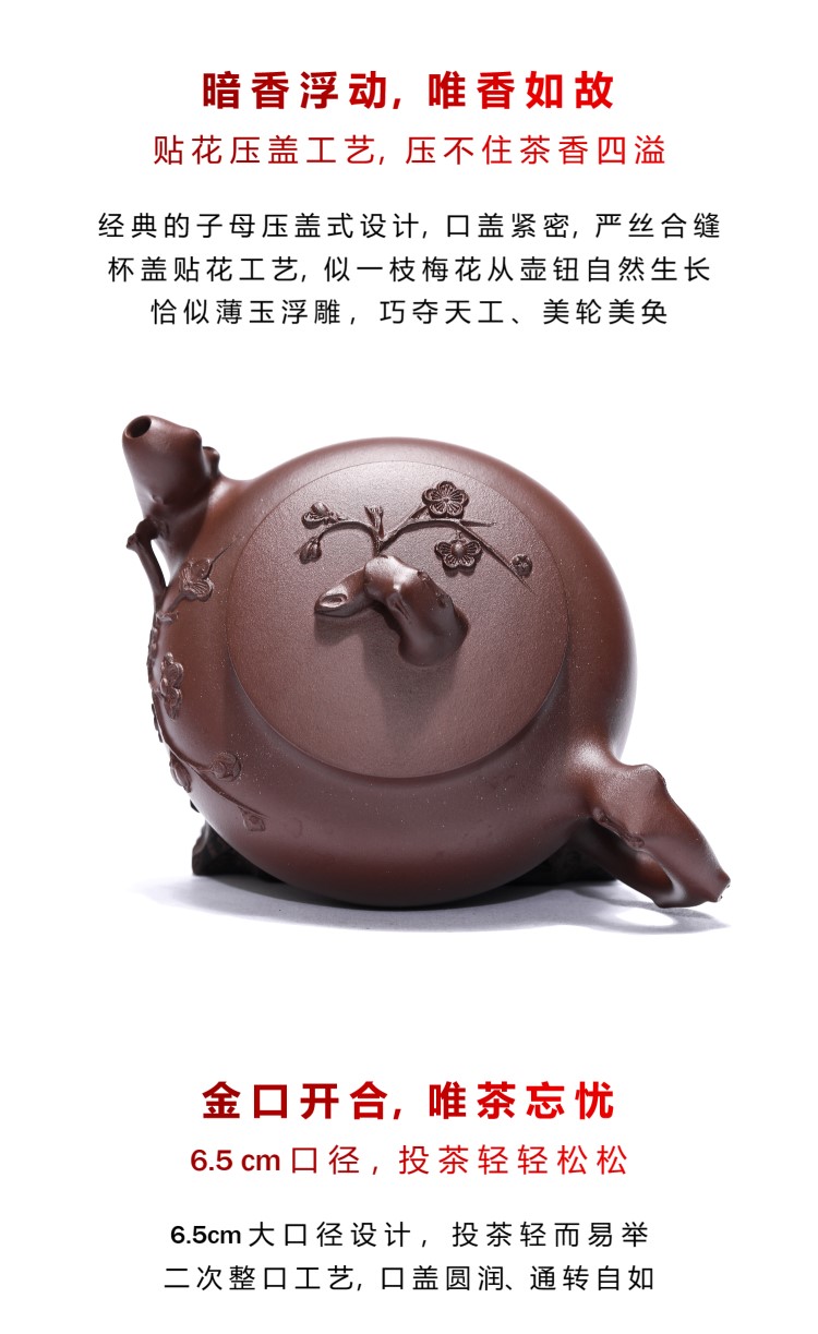 香石坊宜兴原矿纯手工紫砂壶一品寒梅325mlBT8019 单位:把 一品寒梅325ml