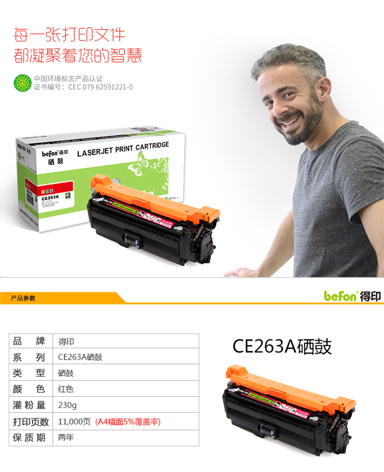 得印(befon) CE263A 大容量 11000页 适用惠普 CP4025 硒鼓 1.00 只/支 (计价单位:支) 红色