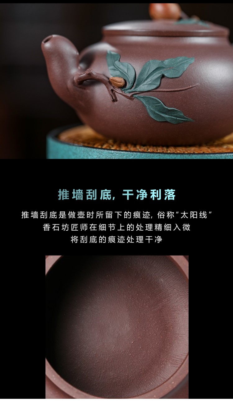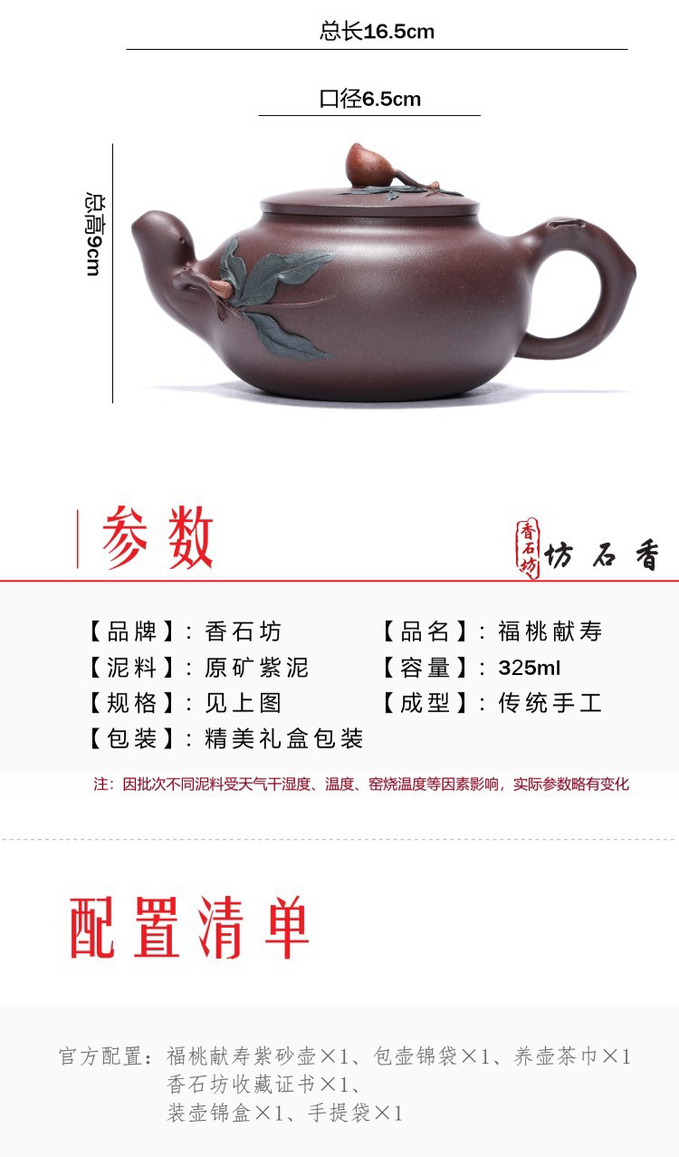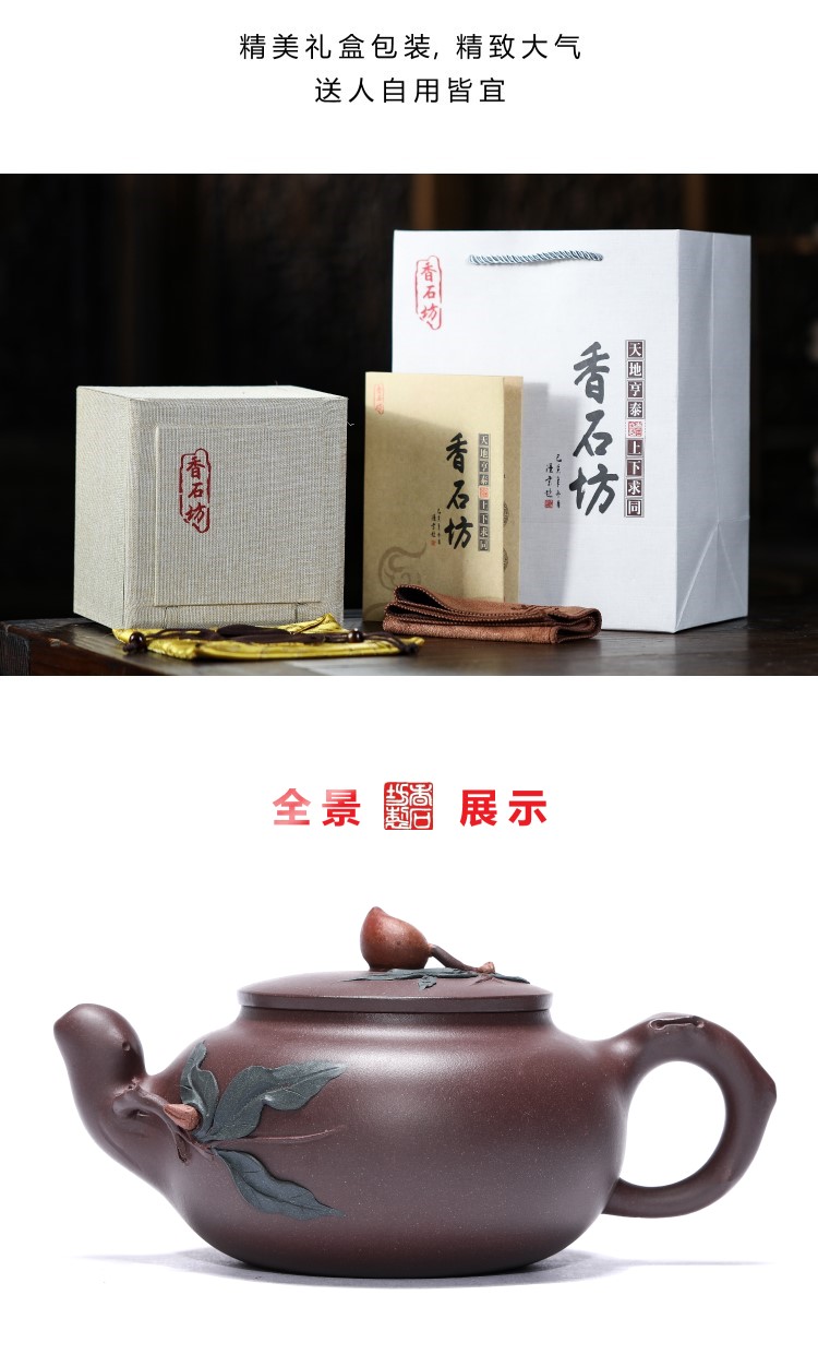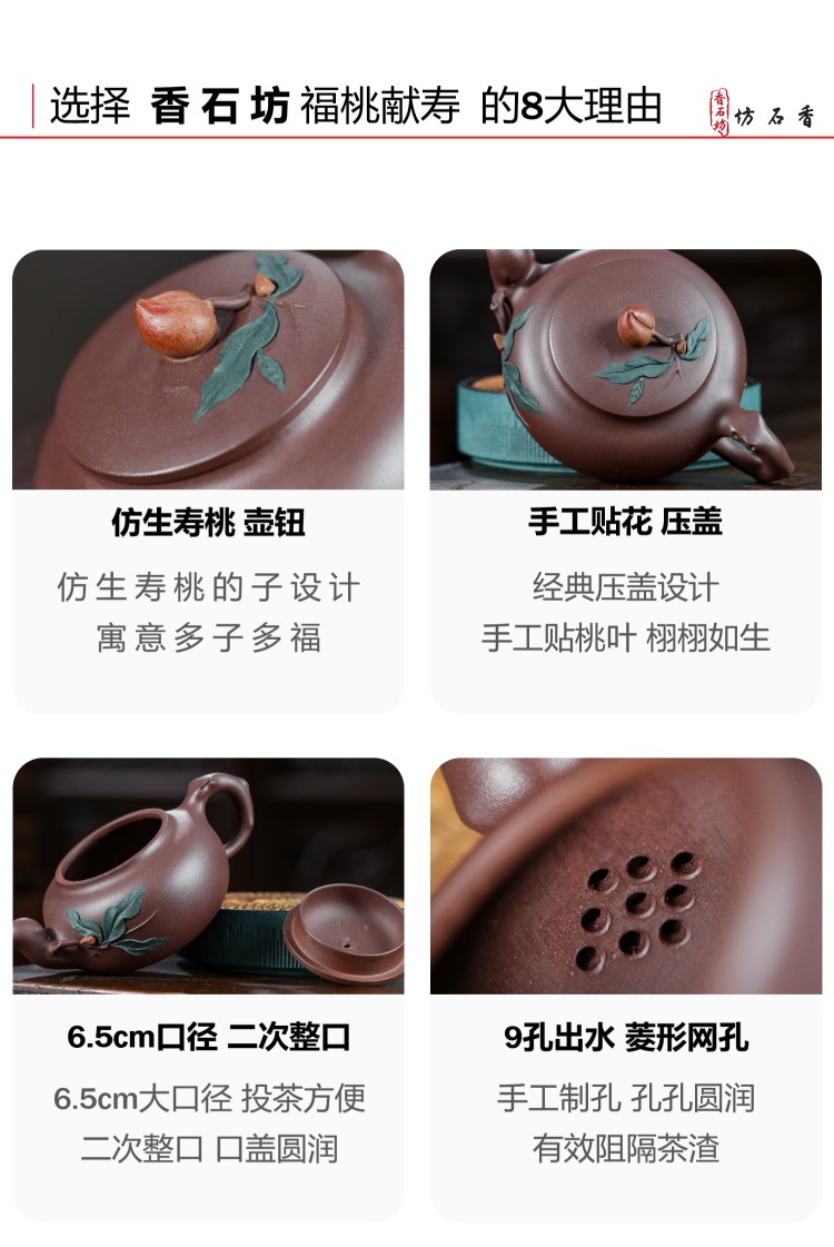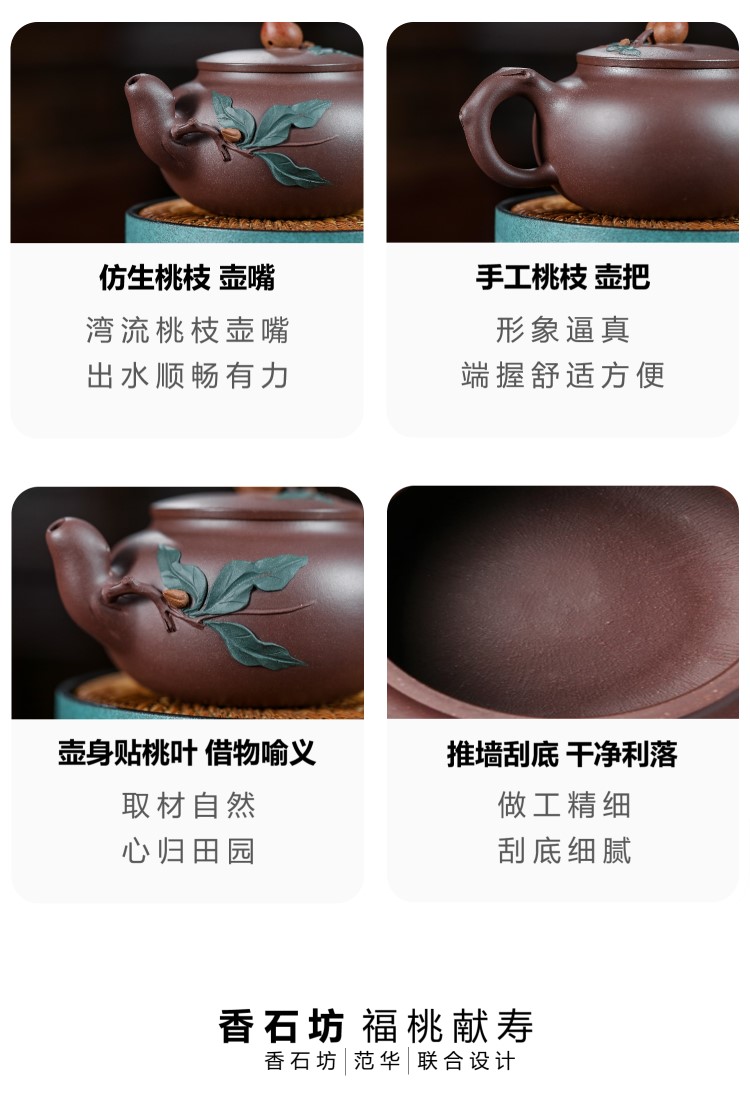 香石坊宜兴原矿纯手工紫砂壶福桃献寿325mlBT8003 单位:把 福桃献寿单壶325ml
