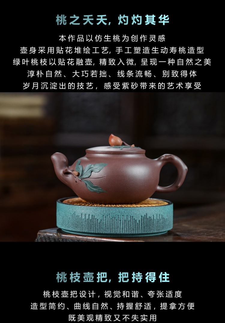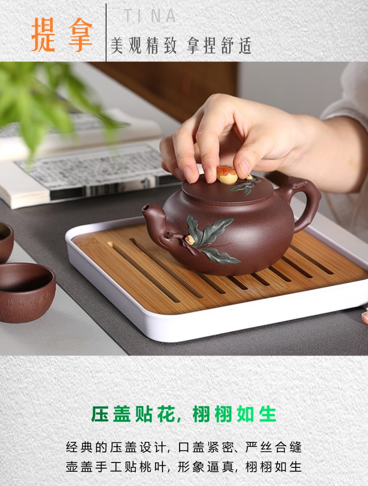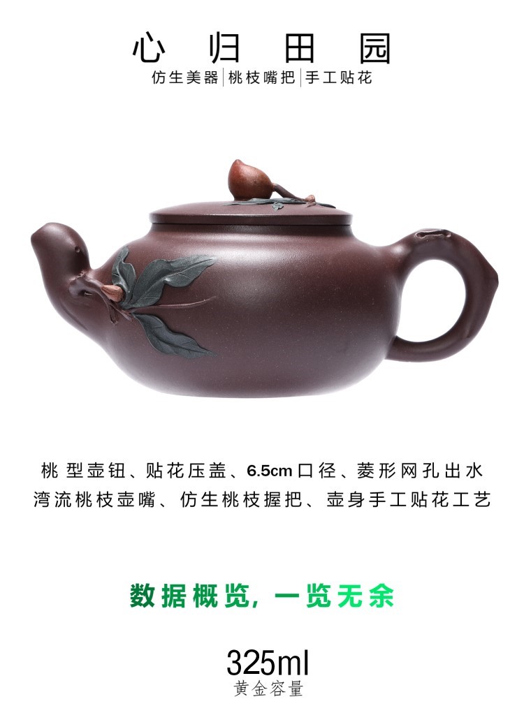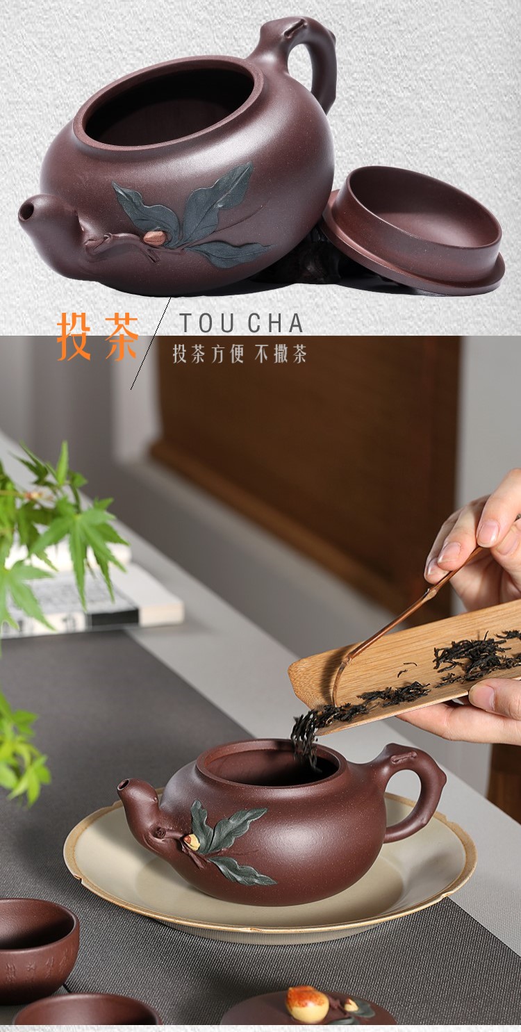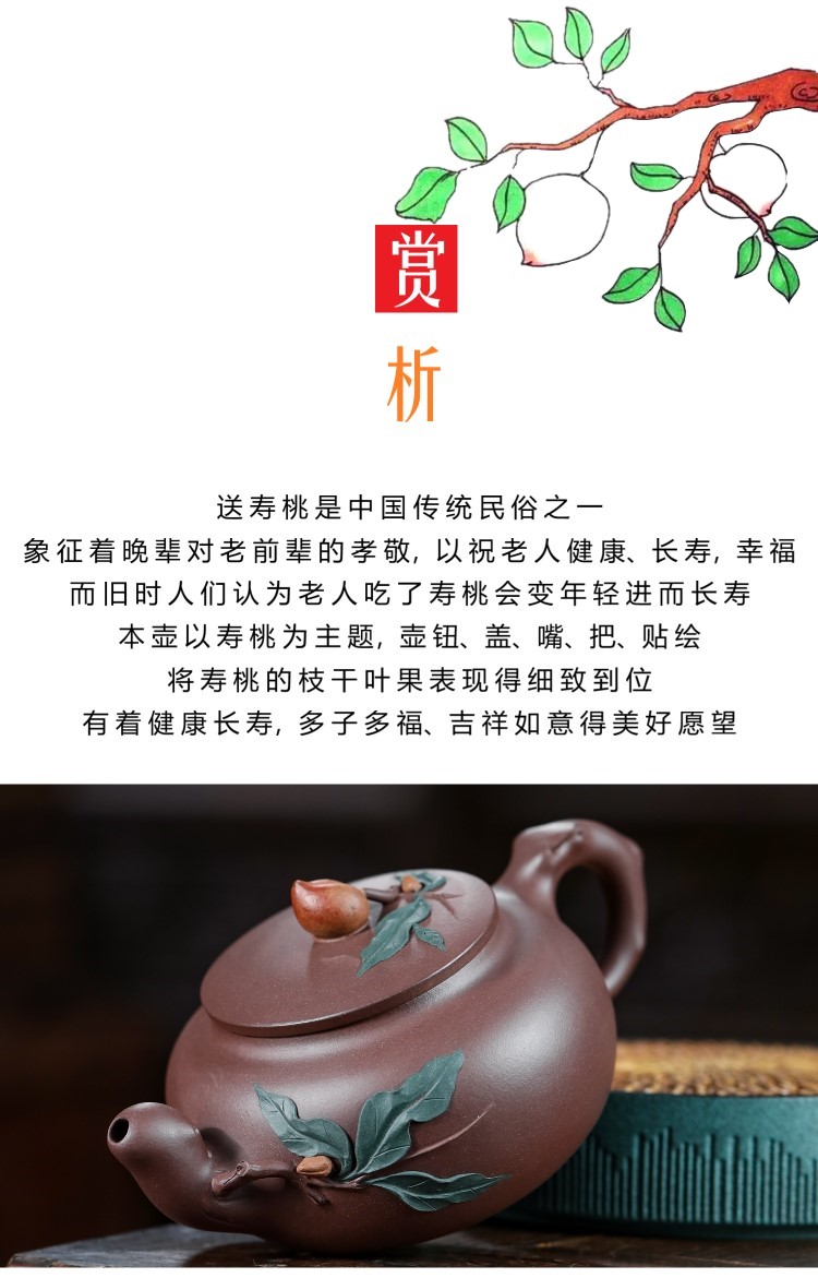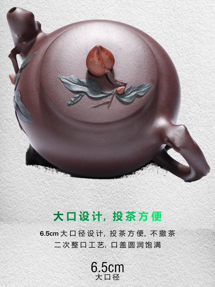 香石坊宜兴原矿纯手工紫砂壶福桃献寿325mlBT8003 单位:把 福桃献寿单壶325ml