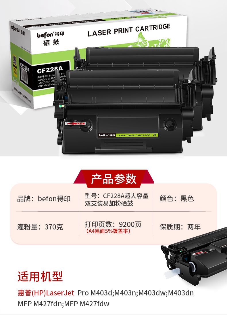 得印CF228A硒鼓 2支装适用惠普m403d m427dw m427fdw m403dn 单位:套 黑色