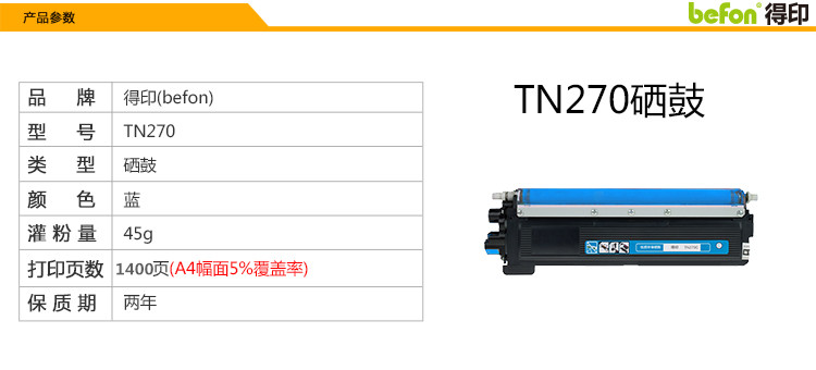 得印TN-270C粉盒适用兄弟HL3040CN/3070CW/MFC9120CN单位:支 蓝色