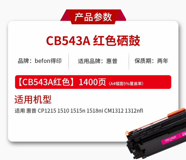 得印 CB543A硒鼓 惠普HP CP1215 1510 1515n 1518ni 单位:支 红色