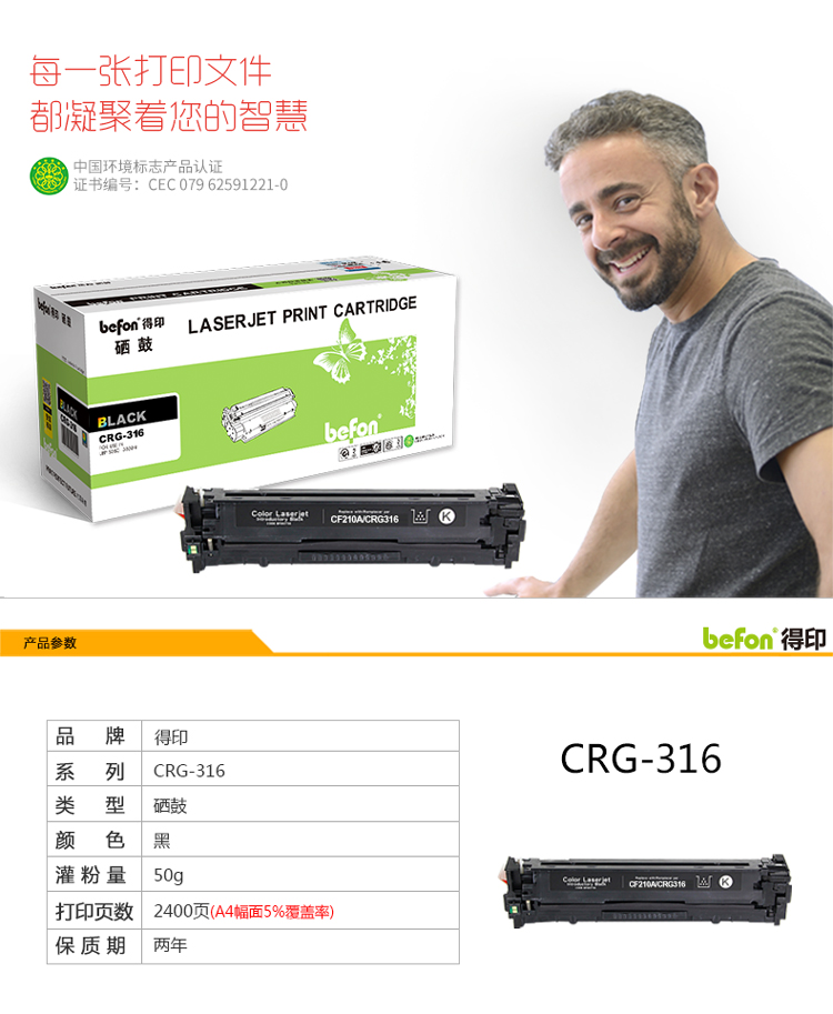 得印CRG-316BK黑色硒鼓适用佳能 LBP5050/LBP5050N HP M276n单位:支 黑色
