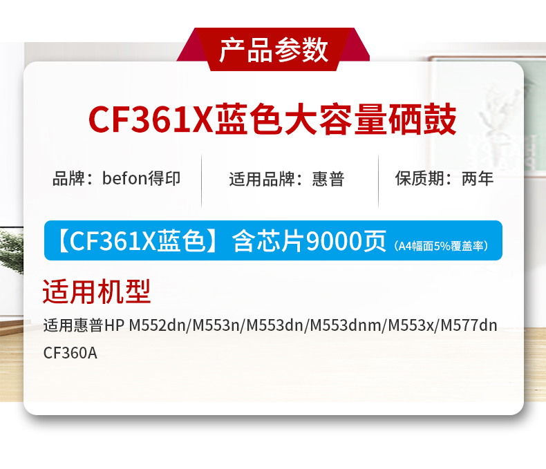 得印CF361X硒鼓蓝色大容量 508A 适用惠普HP M552dn M553n M553dn 支 蓝色