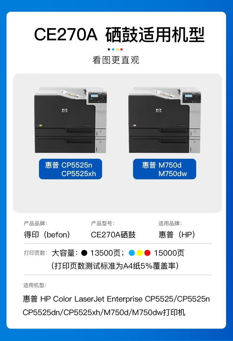 得印 CE270A黑色硒鼓 惠普CP5525 CP5525N CP5525DN 单位:支 黑色