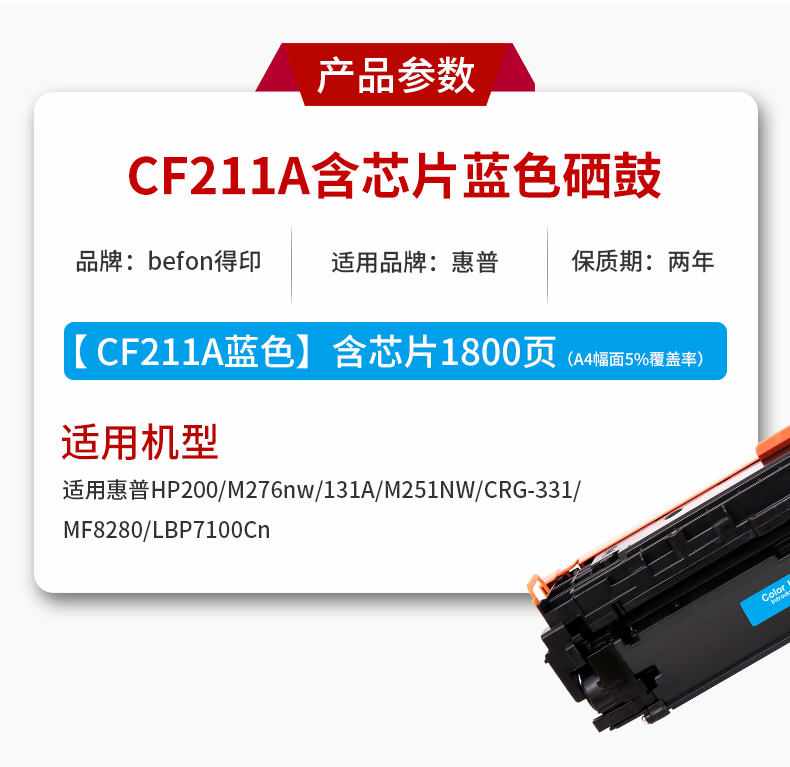 得印 CF211A硒鼓蓝色 适用惠普HP M251n墨盒M276n 131A M276NW佳能lbp7100cn mf628cw打印机粉盒 蓝色