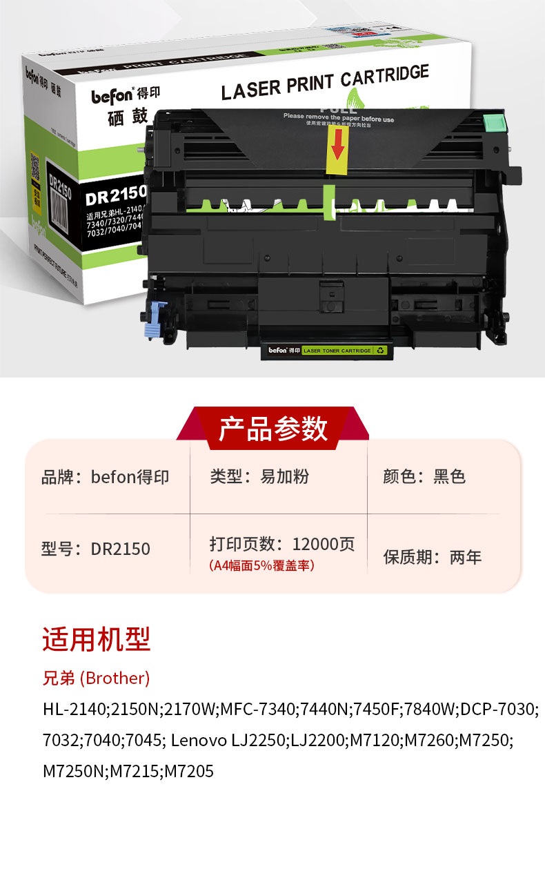 得印(befon) DR2150 约12000页 适用兄弟HL-2140 2150 硒鼓 单位:支 黑色