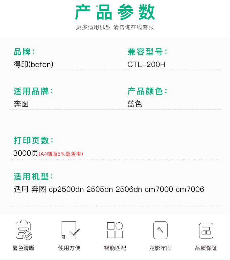 得印CTL-200粉盒适用奔图cp2500dn25052506CM7006FDN单位:支 蓝色